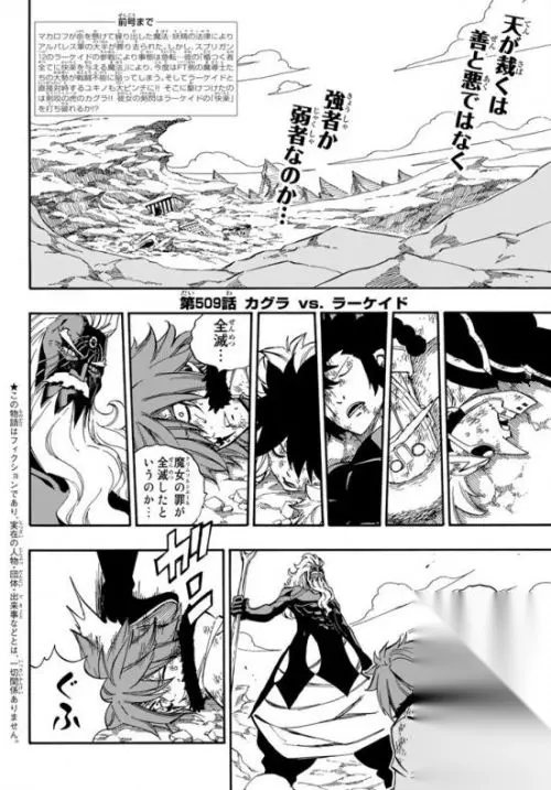 妖精的尾巴漫画509话先行图公布,作为杰尔夫的秘密武器—拉凯德也登场参战了。面对拉凯德的首战对手为人鱼之踵的最强魔导士神乐。