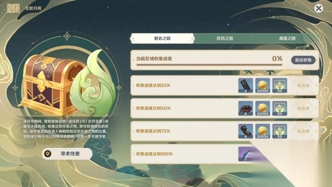 原神逐月符有什么用?在近期的逐月节活动中,逐月符是一种重要的节日活动道具。那么这种道具该怎么获得呢,下面就一起来看看相关的作用介绍吧。 原神逐月符有什么用 一、作用介绍 1、需要在活动中寻找到所有的逐月符 2、在收集齐全部的逐月符之后就能够得到丰厚的奖励 3、目前能够收集的只有奥藏山地区