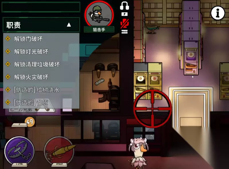 狙击手拥有两个核心技能,分别是“瞄准射击”和“会议狙击”,先看瞄准射击,使用该技能时需要保持静止不动,通过瞄准镜来寻找目标,如果能成功击杀的是反派角色“猫头鹰”就能直接获得胜利,但是如果杀错了目标就会直接暴露自己的位置;