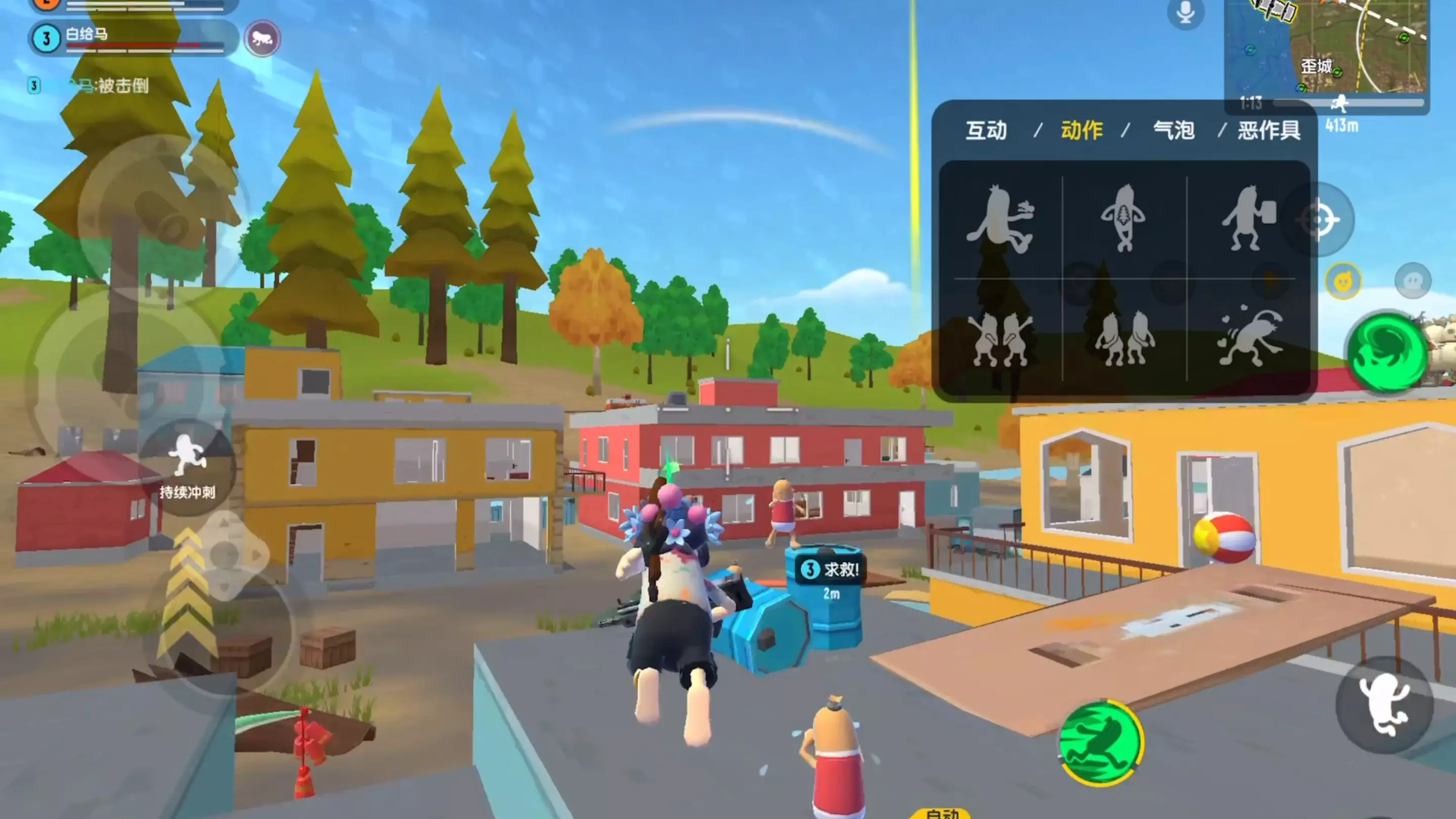 这是射击游戏《香肠派对》的游戏画面,玩家在试炼竞技场的困难模式中,和队友互动比拼手速,还在界面提示下拾取战利品,目前已淘汰10人,展示了游戏内的趣味对战场景。