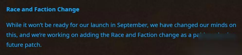这里面的新增字符串几乎全部都是与AH相关的,真意味着在3.4.1版本中暴雪将会对拍卖行系统进行大改。由于目前怀旧服的AH还存在一些问题,例如价格排序的问题经常会导致玩家买到超高价格的物品等。解决这些问题必须借助插件的使用,而且WLK之后AH也经常出现卡顿等现象,非常影响玩家的使用体验。如果能够提早引入类似正式服的AH系统,那肯定是一件好事。 奥杜尔阶段将推出的转种族转阵营服务 而上述的新增字符串中有一条是关于转种族和转阵营的信息,这表明在新版本中可能会将这两个增值服务实装到游戏中来。 由于玩家们的不断发帖和反馈,暴雪在8月9日发布蓝帖表示已经改变了自己的想法,确认将在WLK怀旧服中提供转种族和转阵营的服务。