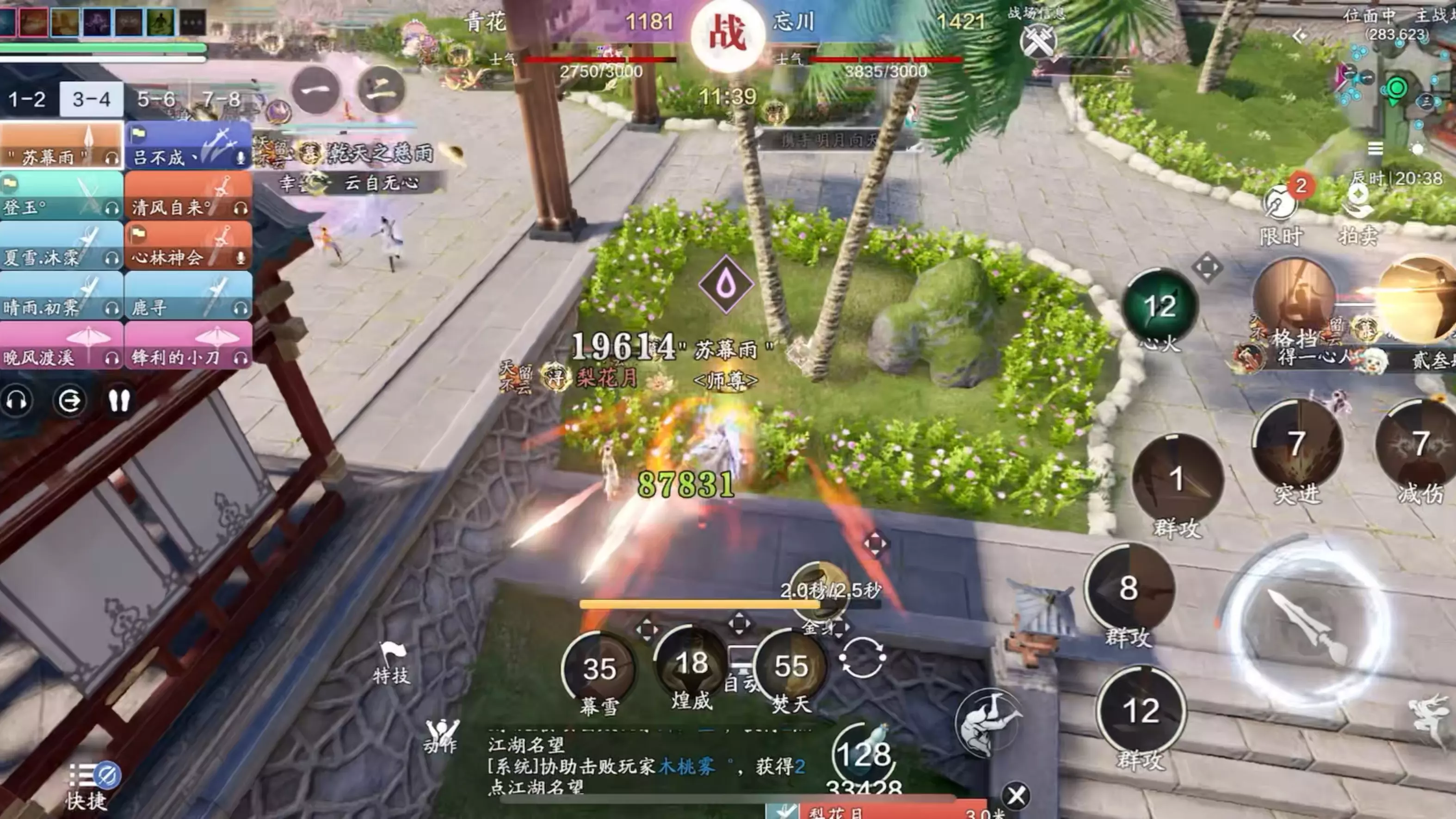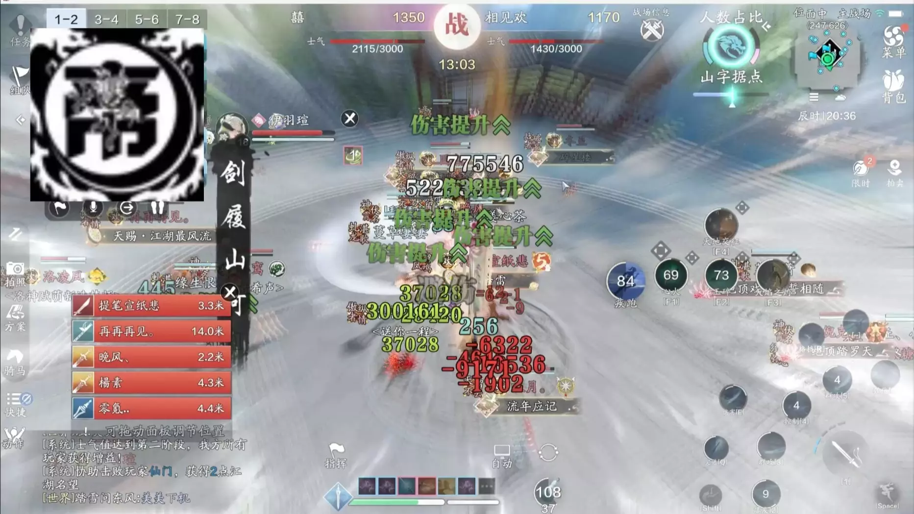 这是天涯明月刀手游的联赛内容,展示了芳华轩与睡务局的对战过程,画面呈现了激烈的团战打斗场景,还有玩家的战斗数据、技能释放等细节,尽显天刀手游联赛的热血对战氛围。