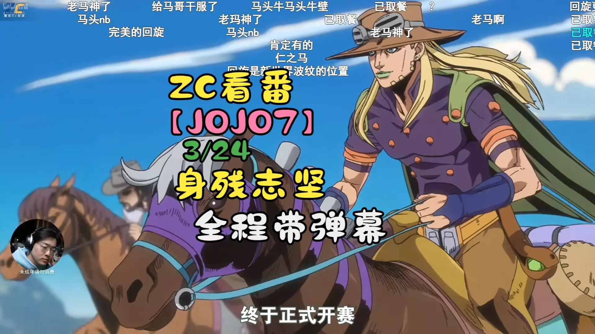 这是主播魔法Zc目录的直播切片,内容为他观看《JOJO的奇妙冒险》第七部第一集的反应,他对荒木创作的奇妙设定表示佩服,全程趣味满满。