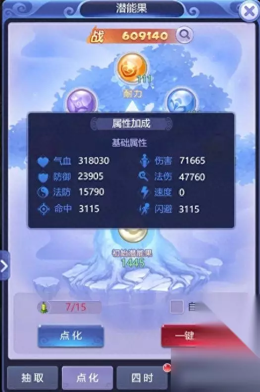 角色-潜能果系统一共分为四个板块 ①抽取(潜能果)-基础属性获取 ②点化(人参果)-基础属性获取 ③四时-基础属性获取 ④天象-基础/进阶/特殊属性获取