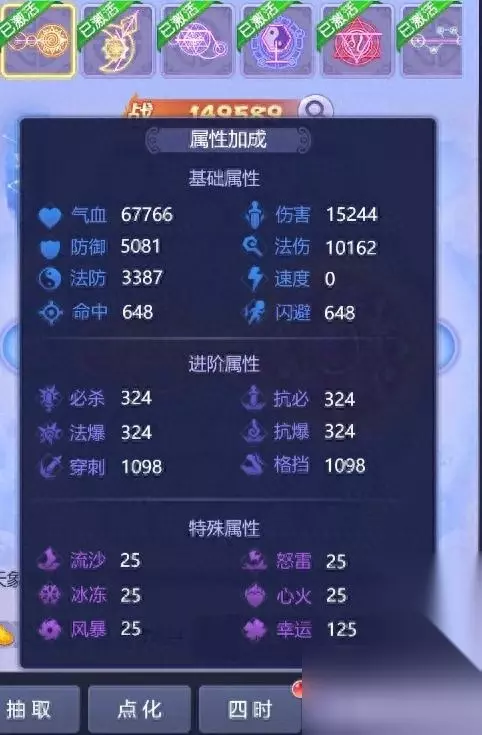 2.点化(人参果) 就1个注意点:不要花仙玉买人参果 人参果的主要来源为长安保卫战获得的积分在功勋商店进行兑换即可! 满级属性我没有,大家将就看一下吧,反正就是获得基础属性(没有速度)