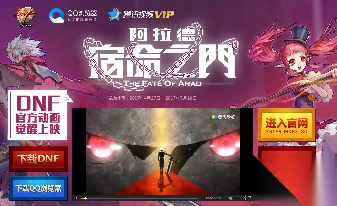 DNF动画片阿拉德宿命之门,4月28日正式上线,与QQ浏览器、视频携手给大家发放福利啦,黑钻、疲劳药、深渊派对通行证等你来拿,下面小编就给大家介绍一下DNF阿拉德宿命之门活动具体内容吧!