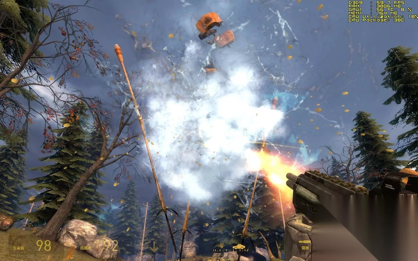 重力枪一发炮弹,粘上之后,补一枪三脚架就死了