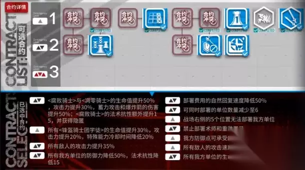 明日方舟危机合约光谱行动八号竞技场攻略大全 一、合约选择 如下图所示,该篇攻略未选择任意一条三级合约,因此可以随便打两把就能选择18低保合约了。 以下为旧约时按照紧凑模板从左到右顺序: 1级合约:2/10/13/15(共计4) 2及合约:2/4/6/7/9/11/12(共计14)