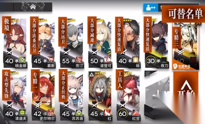 二、干员选择 核心干员:凯尔希(3技能<指令:熔毁>专精3);史尔特尔(3技能<黄昏>专精3);红(2技能<狼群>) 其中红是为了2技能晕眩效果打断大锤蓄力,不需要练度。 其他干员:桃金娘/极境;常规攻击型先锋(可用推王);法系近卫;远卫;单奶;减速辅助;快速复活*2;工具人*1