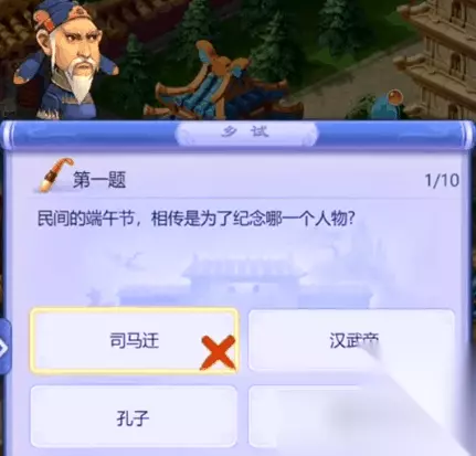 活动介绍 科举大赛分为乡试、会试、殿试三个环节,参加会试并且成绩优秀的考生将获得殿试资格。 1.乡试部分 ①、参与条件: 人物等级≥10级。 ②、活动时间:每月第二个星期日12:00——14:30。 ③、考试流程:共40道题,答对30题即可过关,每人只有一次机会。 ④、考官位置: 考官 建邺 傲来国 吏部考官 149,124 133,64 礼部考官 215,59 145,101 兵部考官 242,112 192,75 工部考官 179,115 188,32