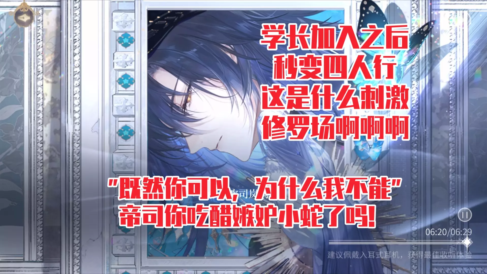《时空中的绘旅人》(玩家戏称海螺肉)有着超多精彩修罗场剧情,从角色间的对峙、异界少女被关囚笼到抢新娘等情节,看点十足,很难在其他游戏里看到这么多这类精彩内容。