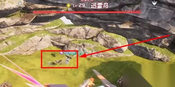 3、到了位置后变会发现这里有一只29级的迅雷鸟boss。