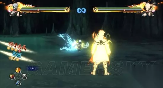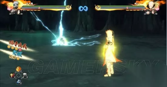13.雷切·迅 使用者:旗木卡卡西 先将雷遁寄附在大量苦无上,并利用神威的高机动性两面夹击对手。之后从上方俯冲下来使用雷切。在本作中作为奥义出现。