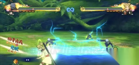 15.雷切·双雷震 使用者:旗木卡卡西 用连续的雷切在空中打击对手,最后从上至下将对方击落。效果很帅。