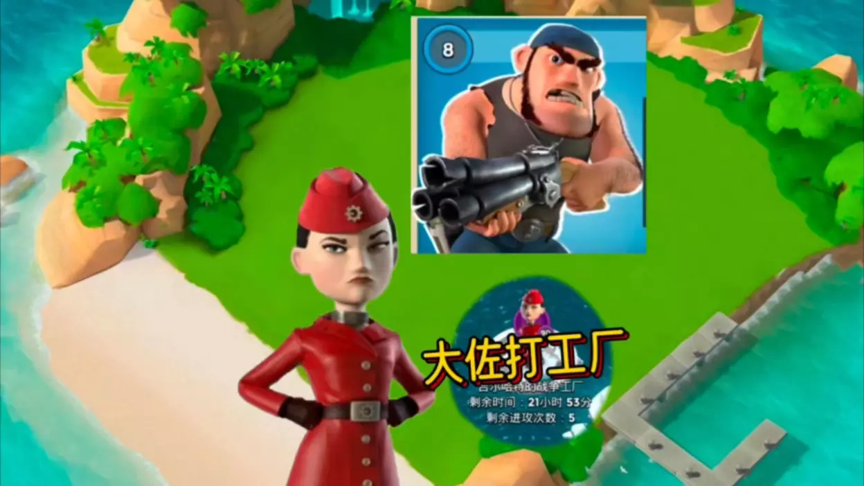 这是策略手游《海岛奇兵》的游戏内容展示,玩家的单机号出山后,在战争工厂救伊娃、在哈莫曼的司令部救巫医,狂轰滥炸完成战斗,还实现零伤亡获胜,展现出单机号的强劲实力。