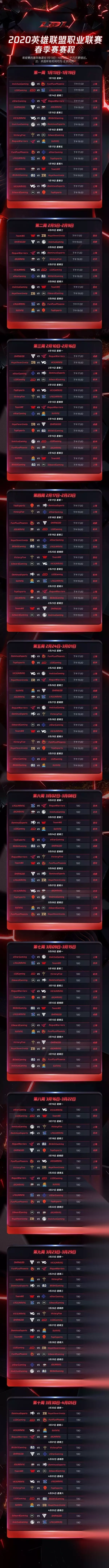 以上便是2020英雄联盟LPL春季赛赛程表,希望对各位小伙伴有帮助。若是玩家想要了解更多关于英雄联盟这一游戏的游戏攻略以及最新游戏资讯,那就关注英雄联盟专区吧! 云顶之弈出手游啦! 手机轻松玩转云顶之奕,上线随时随地下棋吃鸡!