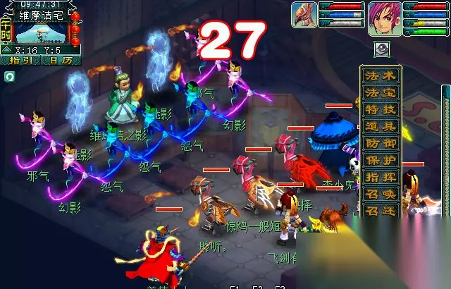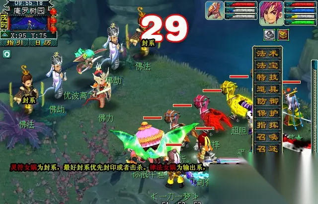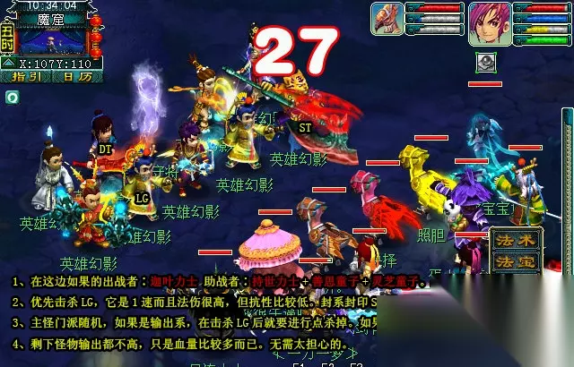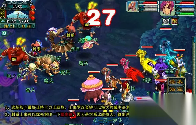 1、这场战斗最好让持世力士助战,上来罗汉金钟可以极大的减少法术伤害,战斗会让简单很多。 2、封系上来可以优先封印一下鼠先锋,因为是封系比较烦人。输出系可以优先击杀主怪。