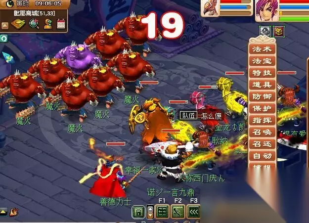 赤炎魔将∶主怪为MW,小怪多为法系,跟前面一样有持世力士就很简单。
