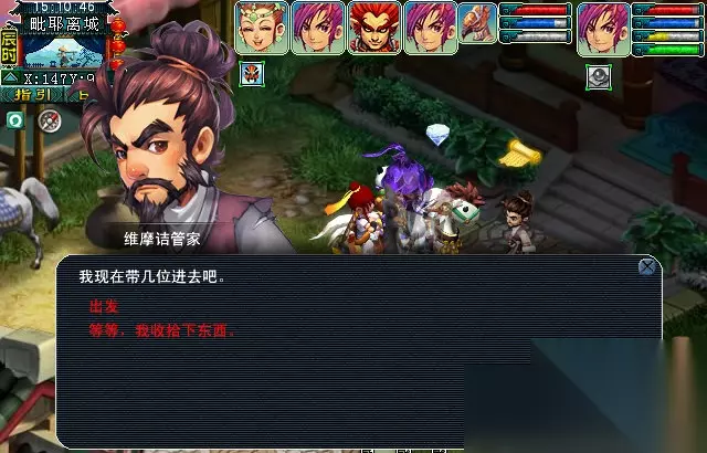 重新找到维摩诘管家对话,然后去找医生,最后通过引路力士传送到庵罗树园。