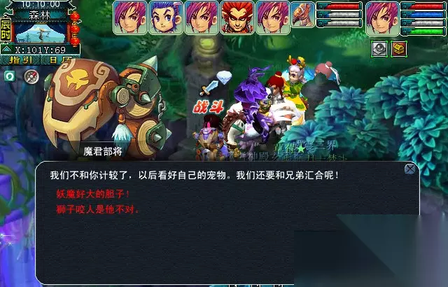 战斗结束后,在坐标〔101,69〕找到魔君部将