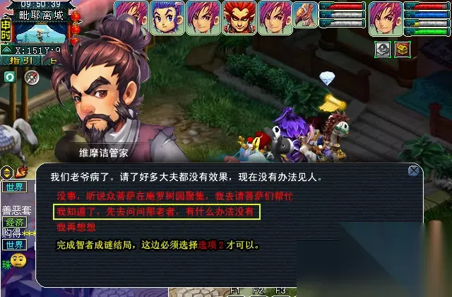 战斗结束后,在去找神秘人,然后找维摩诘管家。这边选项必须选择第2个。