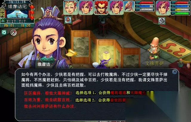 与维摩诘对话后,进入战斗。虽然是满怪,但是怪物的血量很少,无需担心。获得“真假智者”片段。 主线合二为一