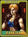 LUCIA 露西亚 必杀技 跳,↓↘→+拳(火焰脚); →↓↘+拳(天升脚) (超必杀SUPER)↓↓→+拳(爆烈脚)注意:LUCIA的必杀不是抓取状态。