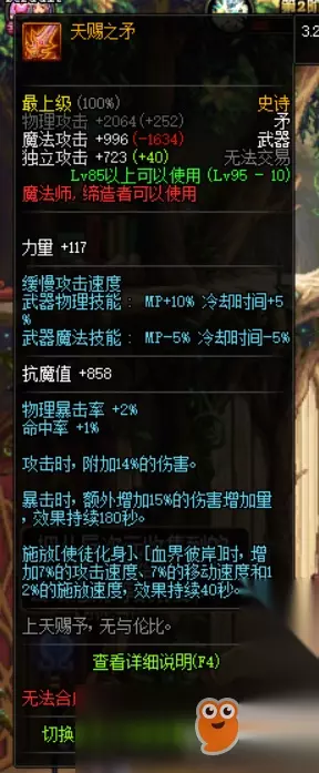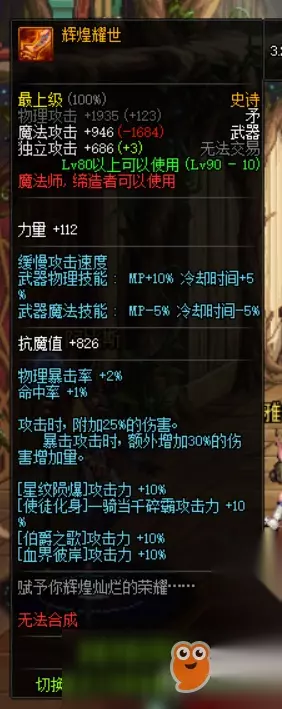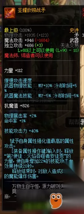 然后我们圣耀长矛,对于血法师来说,第二选择好了,不能毕业