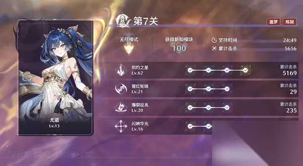 一、关卡机制 前六关难度较低,只要使用推荐共鸣者并在第七波时选择助力主武器进化的武装即可稳定通关。真正的挑战在于第七关的无尽模式,核心目标是在持续刷怪中保持输出与生存平衡。 二、共鸣者推荐 首选共鸣者为尤诺。 她是目前唯一拥有主动技能回血(吸血)机制的角色。高频攻击与持续回复结合,在无尽波次中极具续航优势。