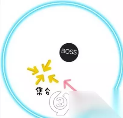 在挑战中,会出现集合的闪标,需要一起集合并合力攻击。