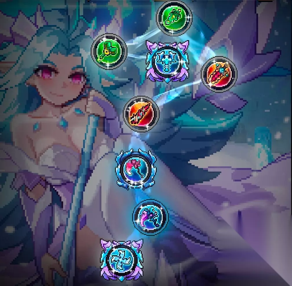 这次天赋我想了很多,最后还是选择带了泉水之灵 因为我个人认为在世界这种卡顿的场景,稳定的大量的出球比单审判状态稳定很多,所以我最后选择了带泉水之灵。 再提一嘴,能量上限在携带镜界不够的情况就把天赋换成加能量上限的,一环携带巫女。 《技能推荐》