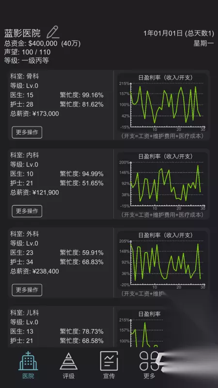 《模拟经营医院》这部作品通过各种趋势图,有结合着近乎于纯净版的文字构架设计,让玩家来开展一段回味无穷的经营之旅,从打造的科室再到医院的布局,甚至是一些对于疾病的描述,都是依托于专业理念进行精确复原的,在过程中你将遭遇各种奇异古怪的疾病,你还需要挖空心思对招聘的医师进行能力的培养,让你的医院从最开始的鲜有人知,到最后成为垄断全市的存在。 高速下载 普通下载 优先233乐园APP下载 如果你不想再循规蹈矩,幻想着有朝一日在一片独立的空间中大展身手,那么在此时此刻就在小编本文的引导之下,在这些虚无的世界之中去大展宏图吧,五大好玩的经营类游戏盘点,你完全可以把它当做是一次未来人生的预演。
