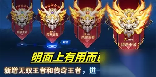 这种新增段位,确实在短时间内对游戏内的气氛,对玩家的积极性,这是有一定调动的。比方说之前能打到最强王者段位,但是打到荣耀王者却不太行,所以打到最强王者以后就不打排位赛了,就只玩巅峰赛或者娱乐模式,现在增加了传奇王者,打不到荣耀王者我也会打到传奇王者。