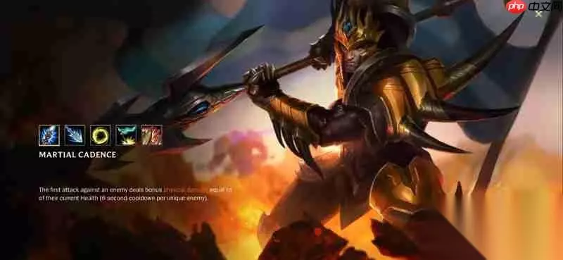被动技能-战争律动 每次普通攻击的第一次命中会附带额外物理伤害,该效果在对同一目标时有较长的冷却时间。这项被动能力使皇子在对线阶段具备良好的换血优势,结合其他技能可打出高额的爆发输出。