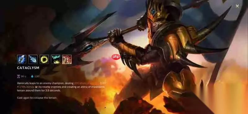 终极技能-天崩地裂 皇子跃向敌方英雄,落地时对其造成物理伤害,并在其周围生成一个持续3.5秒的环形障碍。该技能是游戏内最强大的群体控制技能之一,能够有效分割战场,配合队友极易完成团灭。 凭借技能之间的良好联动,英雄联盟手游中的皇子成为最具威慑力的战士英雄之一。
