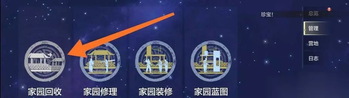 4、在管理中点击家园回收。