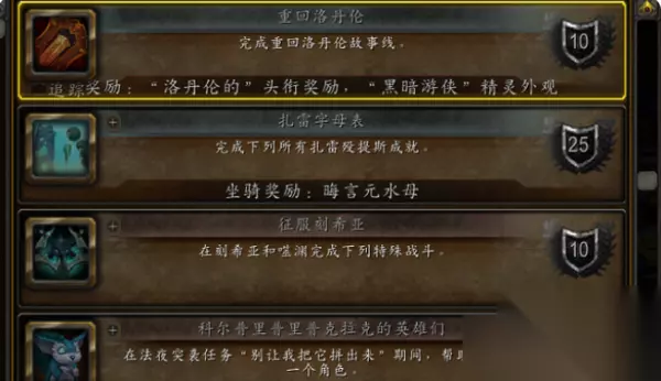 重回洛丹伦: “重回洛丹伦”是部落净化洛丹伦的任务,玩家完成任务之后,可以获得“洛丹伦的”头衔奖励,以及解锁“黑暗游侠”精灵外观。重回洛丹伦任务进行到马卓科萨,在凋零迷院对话完就没有任务选项,卡住了,是因为玩家还有任务没接,那里一共两个任务,点开大地图,地图上会有一个可接任务,在你站那地图偏上,回去接一下即可。
