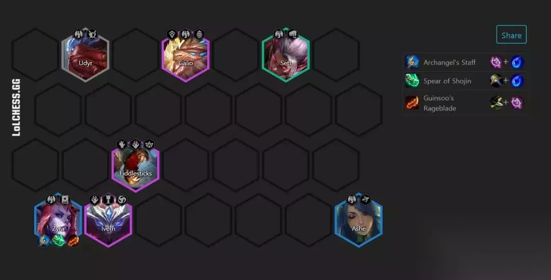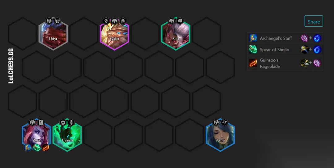 (6)2-3拉自动拉5人口,5人口乌迪尔、凯南、瑟提、刀妹、婕拉 (7)2-3提前拉人口很重要,这样就可以在2-5能够到5人口有2%的概率白P到加里奥,这样就能直接凑出5龙族。