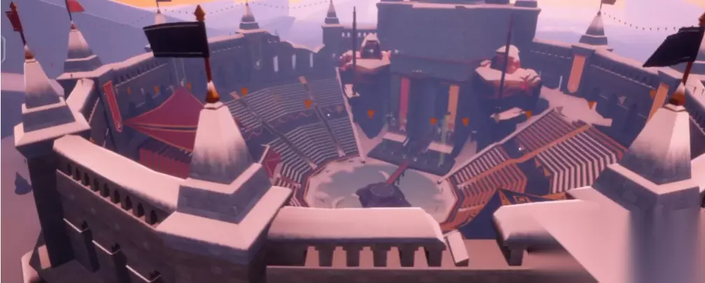 霞谷红斗篷先祖位于滑行赛道终点的亭子中,玩家需从霞谷入口进入滑行赛道,沿固定路线滑行至终点区域。具体路径为:进入霞谷后沿主路线前进,经过长滑行道抵达溜冰场,选择滑行赛道入口,在庙内点燃蜡烛祈祷开门后正式进入赛道。滑行过程中需注意观察前方亭子,靠近亭子停留3-5秒会触发蓝色光点(即先祖灵魂),跟随光点引导即可完成解锁。