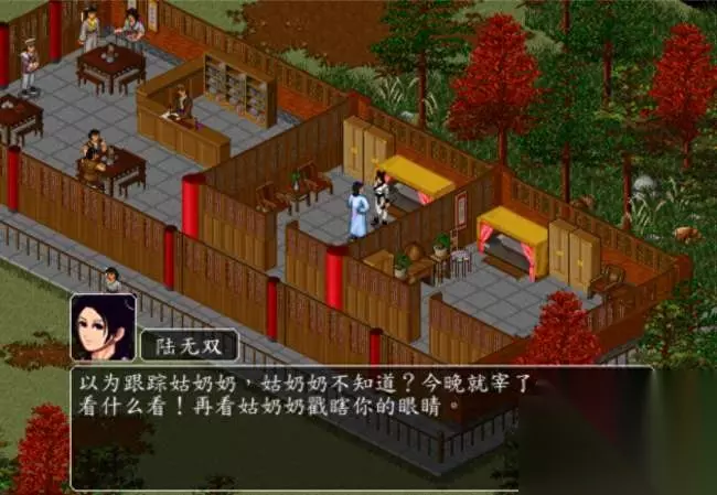 河洛客栈,遇见陆无双和全真弟子等起冲突,与客栈掌柜的对话决定在客栈睡一觉后,夜战陆无双(此战斗有全真弟子和丐帮弟子做帮手,很简单)后,陆无双加入(小伙伴里有女性)。
