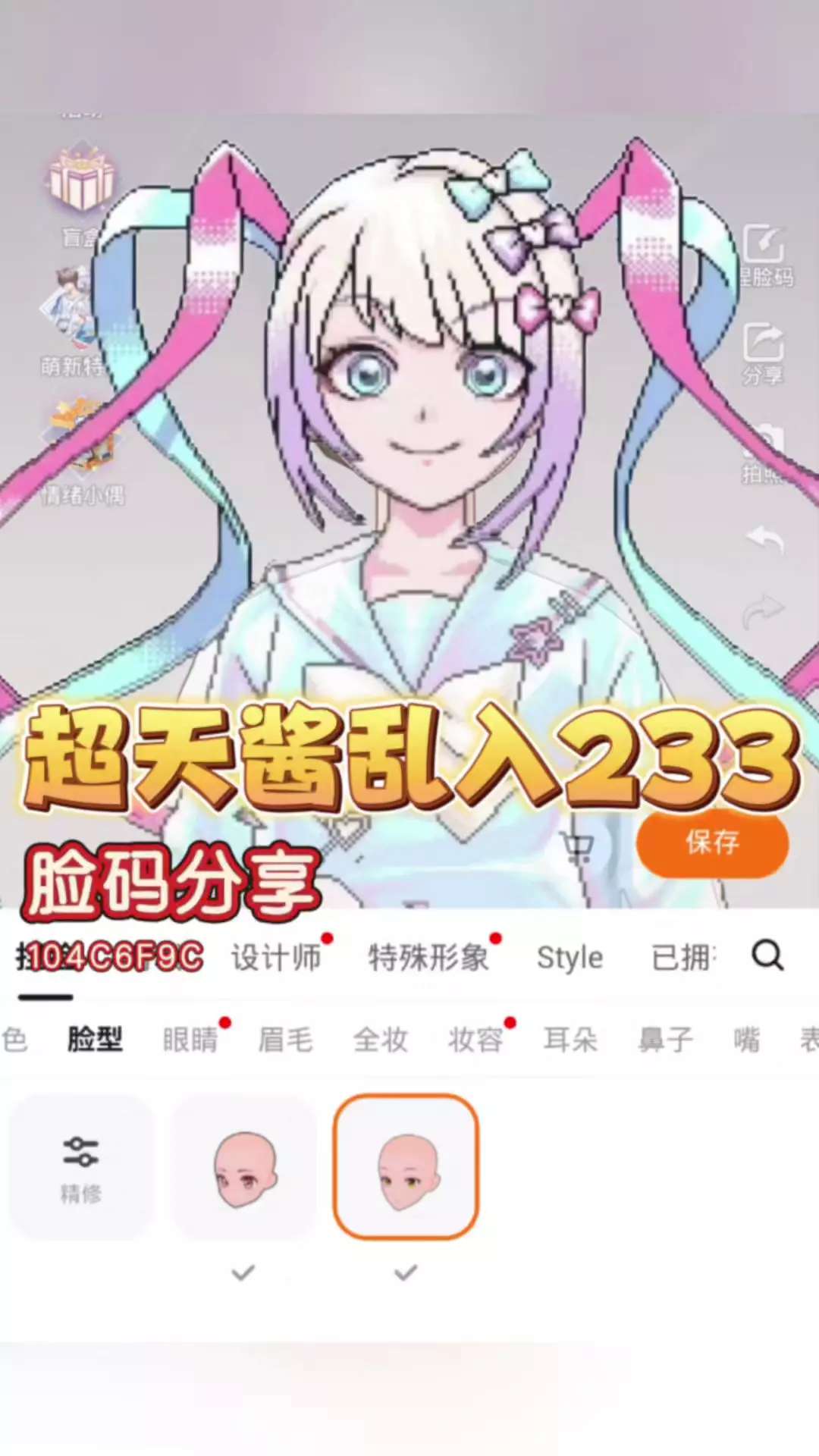 超天酱乱入233!脸码免费分享!需要的宝宝快快抱走吧!!#233捏脸 #233乐园 #233捏脸id #233cos