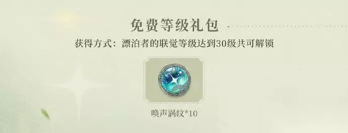 6、免费等级礼包 漂泊者的联觉等级达到30级可解锁