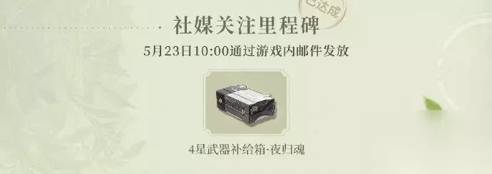2、社媒关注里程碑 2024年5月23日 10:00通过游戏内邮件发放