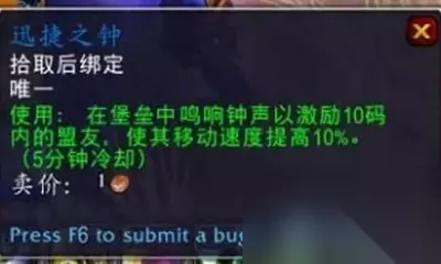 《魔兽世界》9.0道具迅捷之钟获取攻略 迅捷之钟效果:在堡垒中鸣响钟声以激励10码内的盟友,使其移动速度提高10%(5分钟冷却) 在对于一开始无法飞行的暗影界这绝对是赶路神器之一 1、前往晋升堡垒野外,永恒前庭的右上方有个飞行点,飞行点右上方有一个不起眼的山坡,叫做索菲亚的咏叹。 2、在山坡的尽头,有一座石钟,石钟下方有三个平台,需要三名玩家一起站上去 3、出现NPC索菲亚,需要在索菲亚修理时保护她 4、第一批到的是6位52级的普通黑天使小怪“弃誓先锋” 5、第二批到的是6位52级的精英黑天使“强化的弃誓者”,血量已经高达4.4W 6、最后达到的是这群黑天使的首领:重生的妮卡拉,54级精英怪,44.4W的血量 7、击杀重生的妮卡拉。然后索菲亚修好了暮钟。送给了我们一个华丽的大宝箱。 8、打开箱子就获得迅捷之钟