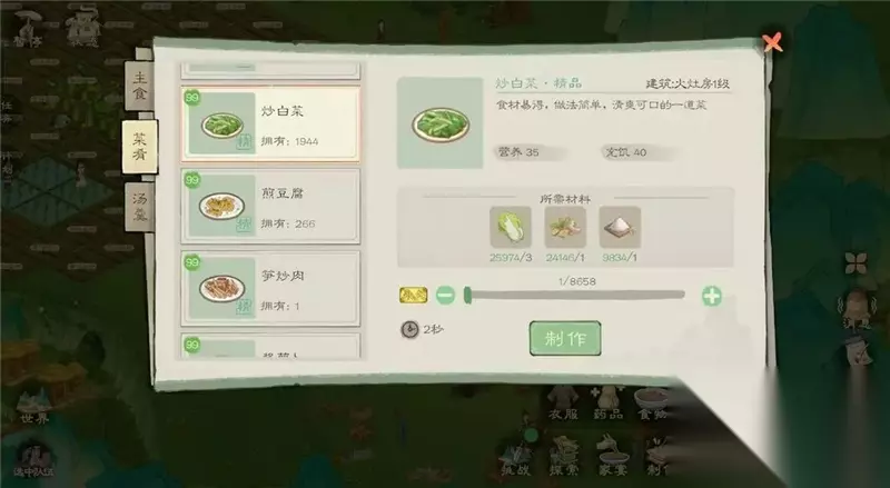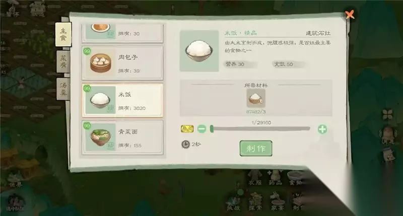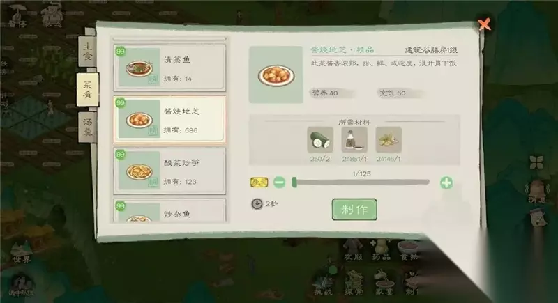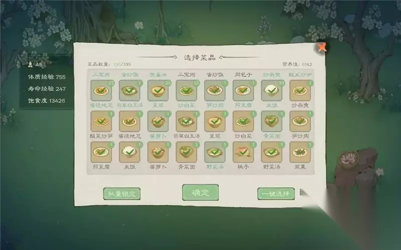 点击地基,可以查看自己的规划 10 、家宴寿命经验获取 :选取高营养食物或菜品种类的丰富程度 (体质经验和寿命经验两个经验决定村民的寿命长短以及劳力