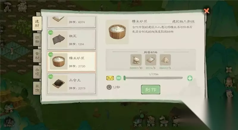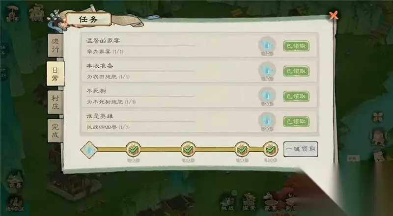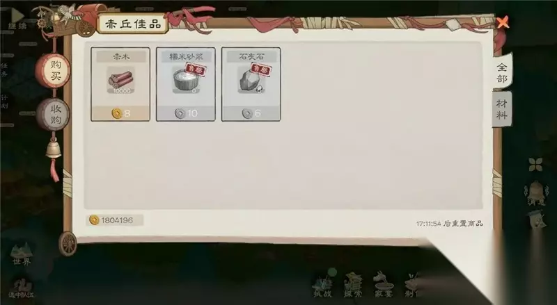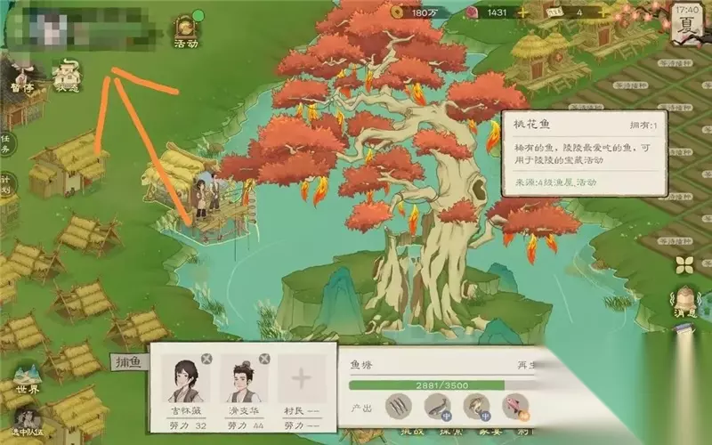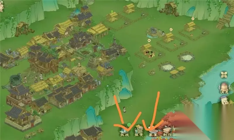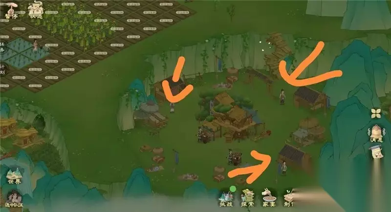 每日可进行探索一次 4、游戏内的几种商人(1)几个村子的杂货铺商人和桃园货郎,主要售卖农作物种子,各种铁锭材料,调味料等(钱币有盈余,河肥每日要买,后面用于点满榕树和楠木科技) (2)各个村子声望商人主要购买图纸和技能书(优先购买建造,砍伐,采集,水晶尽量前期不购买) (3)神秘商人以及银蟾小摊(位于陶先生家银蟾小摊全天有;神秘商人将在家宴触发之后晚上刷新)优先购买离线研究和离线制作、精品食品菜谱,有箭楼底座钱币充余购买。 如图所示