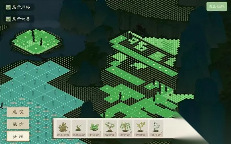 与上面两种搭配使用 9、场景布局:(1)可查看建筑物的摆列情况 (2)装饰区域可以对地图进行装饰 (3)资源区域可以对已采集完的资源的幼苗进行摆放