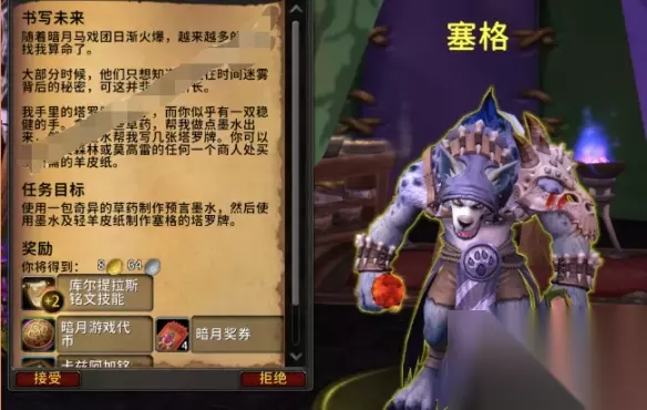 魔兽世界暗月马戏团铭文专业知识点任务怎么做 1、我们需要来到暗月马戏团这个地区的(53,76)的位置找到塞格接受铭文的任务。 2、接着我们可以打开npc提供的一包奇异的草药制作预言墨水。