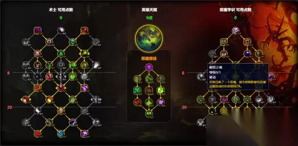 恶魔术是术士的专精之一,在11.1版本要怎么加点呢?这里小编就为大家整理了单体、多目标和Aoe打法的专精加点,都采用了恶魔使徒作为专精,感兴趣的恶魔术玩家可以进行参考和使用。