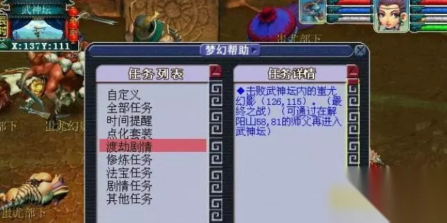 ①此场需要杀死杨正而不能杀死程咬金,杨正有一定的攻击力,但是毫无危险。程咬金不原谅,于是选择逃跑。战斗结束后再次到朱紫国(44,82)找蚩尤之子。